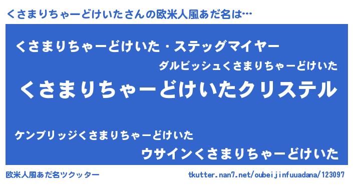 | 意味不明あだ名 | 『くさまりちゃーどけいたフォーエバー』 |