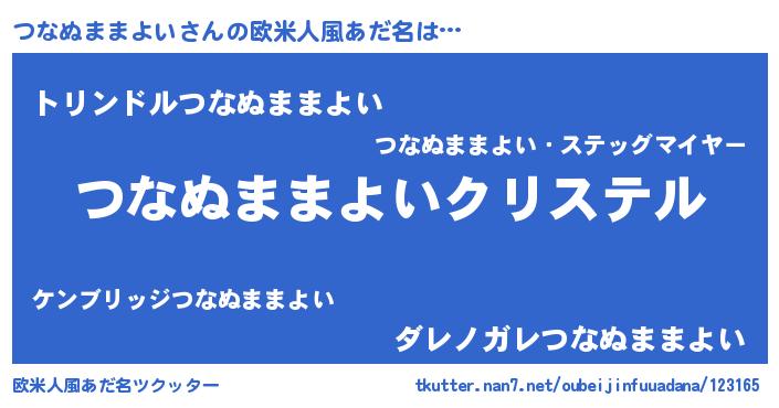 | 意味不明あだ名 | 『つなぬままよいフォーエバー』 |