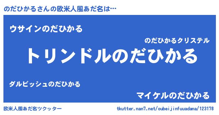 | 男性向けラノベタイトル風あだ名 | 『のだひかる~年齢イコール彼女いない歴の魔法使い~』 |