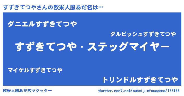 | ヘコむあだ名 | 『すずきてつや(笑)』『すずにゅー』 |