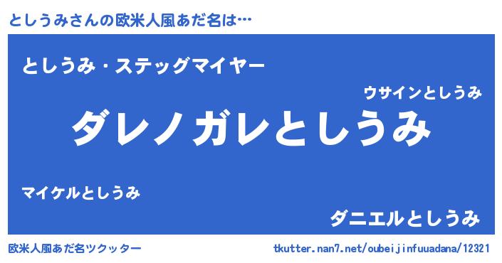 | 意味不明あだ名 | 『住所不定無職としうみ(47歳)』 |
