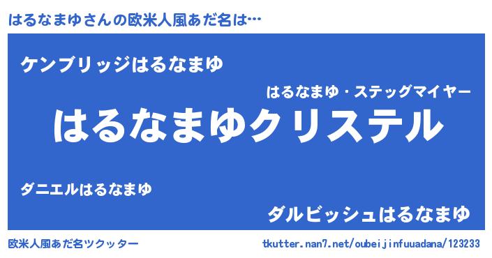 | 意味不明あだ名 | 『はるなまゆフォーエバー』 |