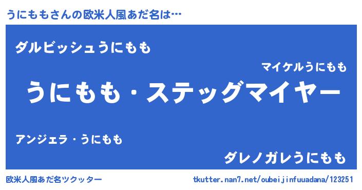 | 胡散臭い通販商品みたいなあだ名 | 『絶対に幸福をもたらす健康食品…その名も「うにもも」』 |