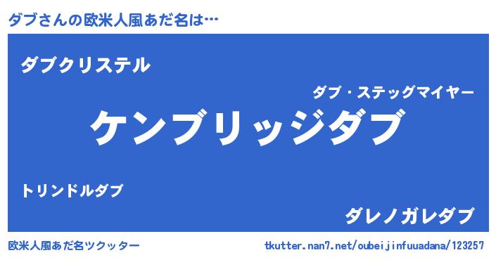 | 意味不明あだ名 | 『自称ダブ』『ダブフォーエバー』 |