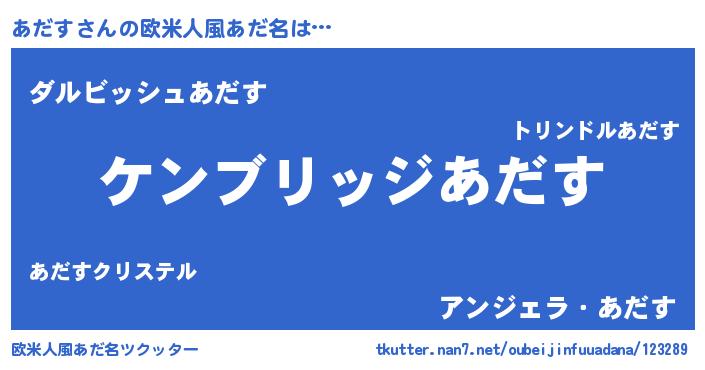 | ファンタジー風あだ名 | 『ゼアダトゥ』『アダディッシュ』 |