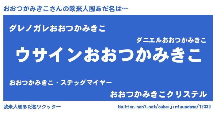 | 男性向けラノベタイトル風あだ名 | 『おおつかみきこの嫁は女の子じゃないと思った?』 |