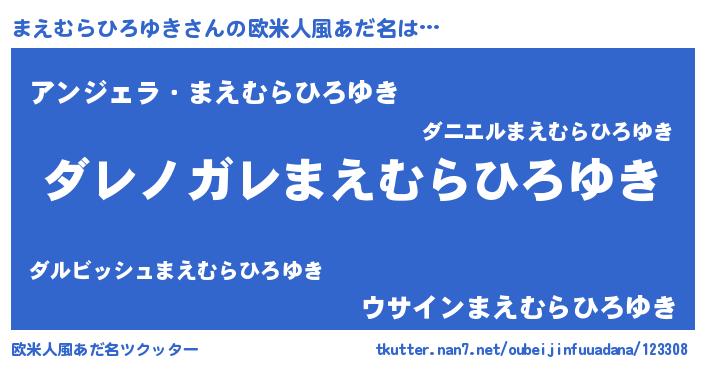 | 意味不明あだ名 | 『住所不定無職まえむらひろゆき(53歳)』 |