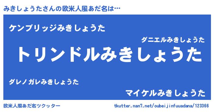 | 意味不明あだ名 | 『たけのこ科みきしょうた属』 |