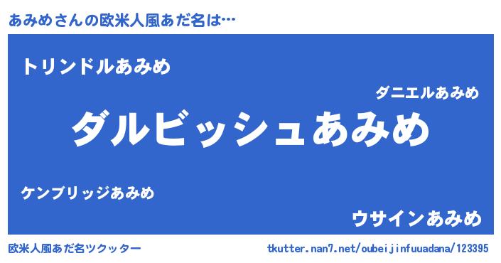 | 男性向けラノベタイトル風あだ名 | 『あみめという概念が存在しない退屈な世界 』 |