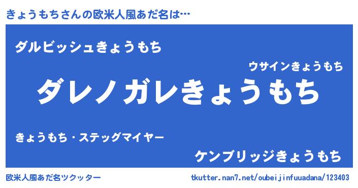 | 意味不明あだ名 | 『住所不定無職きょうもち(11歳)』 |