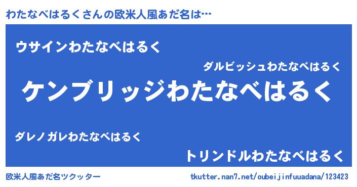 | 男性向けラノベタイトル風あだ名 | 『Re:わたなべはるくから始める異世界生活』 |