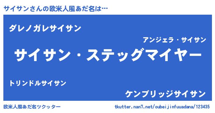 | 意味不明あだ名 | 『住所不定無職サイサン(98歳)』 |