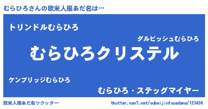 | 男性向けラノベタイトル風あだ名 | 『やはりむらひろの青春ラブコメはまちがっている 』 |