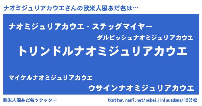 | 男性向けラノベタイトル風あだ名 | 『転生したらナオミジュリアカウエだった件』 |