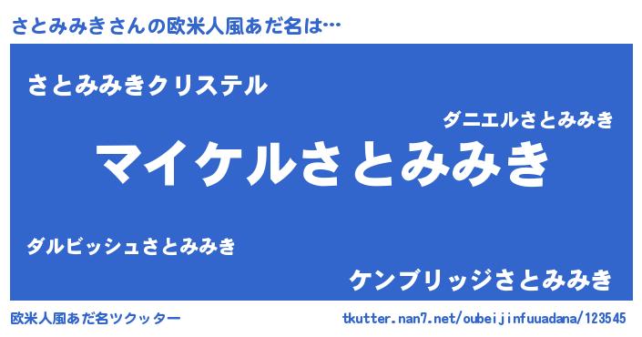 | 男性向けラノベタイトル風あだ名 | 『サトミミキアートオンライン』 |