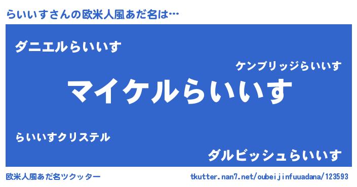 | ヘコむあだ名 | 『らいもー』『らいいす(笑)』『豆乳』 |