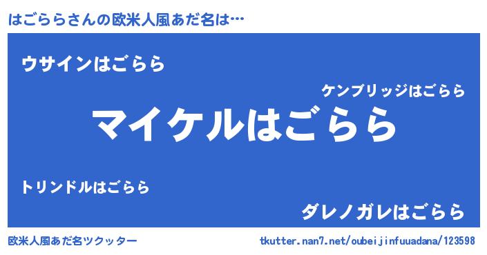 | 男性向けラノベタイトル風あだ名 | 『ハゴララアートオンライン』 |