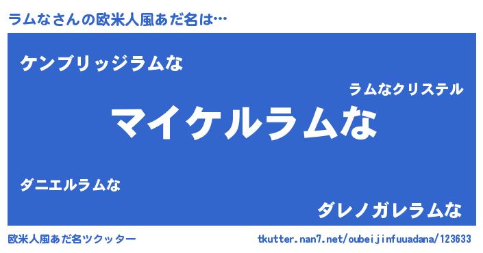 | 男性向けラノベタイトル風あだ名 | 『ラムナアートオンライン』 |