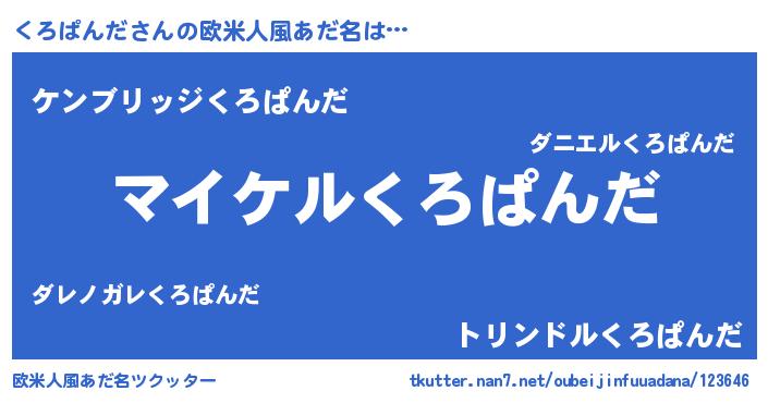 | 男性向けラノベタイトル風あだ名 | 『くろぱんだの憂鬱』 |