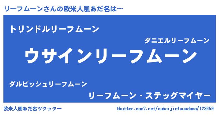| 男性向けラノベタイトル風あだ名 | 『リーフムーンの嫁は女の子じゃないと思った?』 |
