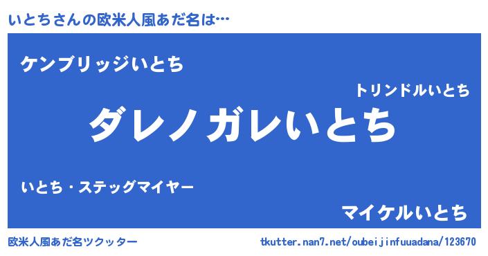 | 意味不明あだ名 | 『住所不定無職いとち(3歳)』『自称いとち』 |