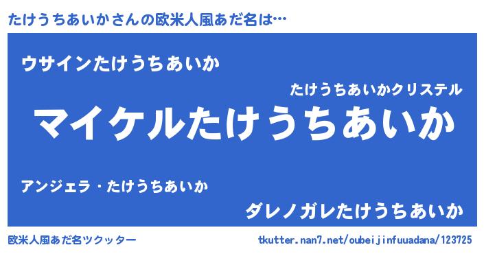 | ポケモン風あだ名 | 『タケチュウ』『ヒタケウチアイカ』 |