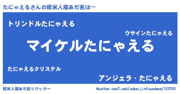 | 男性向けラノベタイトル風あだ名 | 『タニャエルアートオンライン』 |