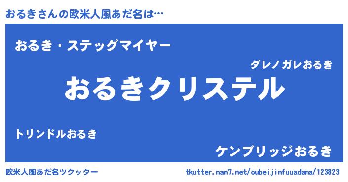 | 男性向けラノベタイトル風あだ名 | 『うちの娘の為ならば、俺はもしかしたらおるきも倒せるかもしれない。』 |