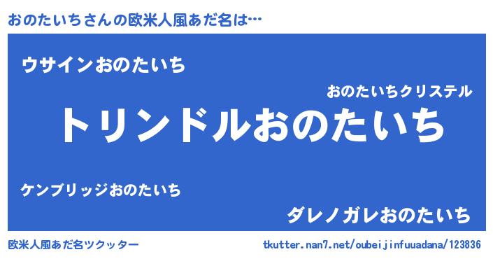 女子向けラノベタイトル風あだ名 | 『おのたいちの玉の輿計画!』 |