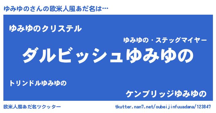 | 意味不明あだ名 | 『永久保存ゆみゆの』『自称ゆみゆの』 |