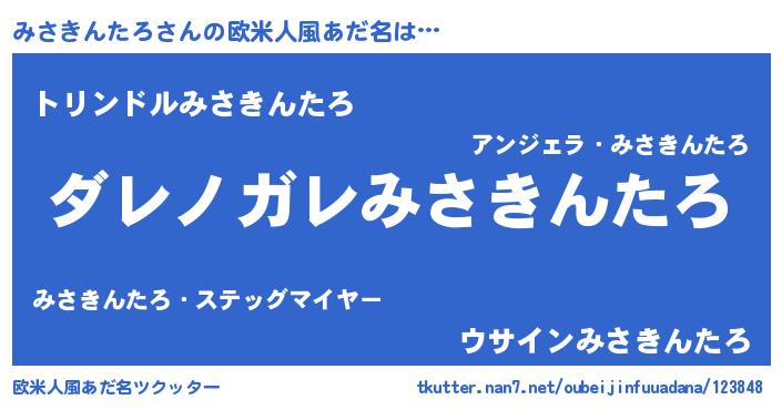 | 女子向けラノベタイトル風あだ名 | 『みさきんたろが死なない童話 林檎のみさきんたろの診療簿』 |