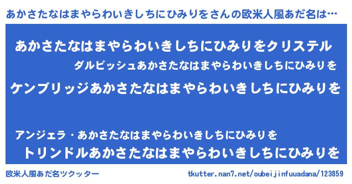 | 女子向けラノベタイトル風あだ名 | 『あかさたなはまやらわいきしちにひみりをなんてお断りですっ。』 |