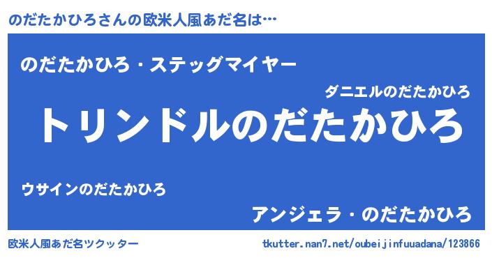 | 男性向けラノベタイトル風あだ名 | 『転生したらのだたかひろだった件』 |