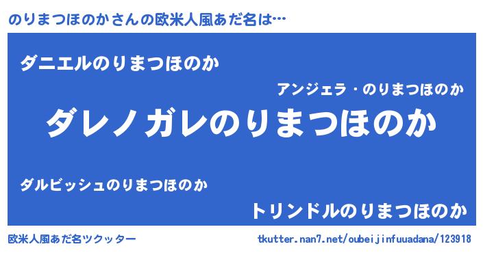| 男性向けラノベタイトル風あだ名 | 『この素晴らしい世界にのりまつほのかを!』 |