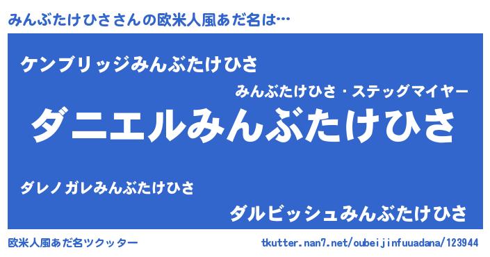 | ヘコむあだ名 | 『みんぶたけひさ(笑)』『豆乳』 |