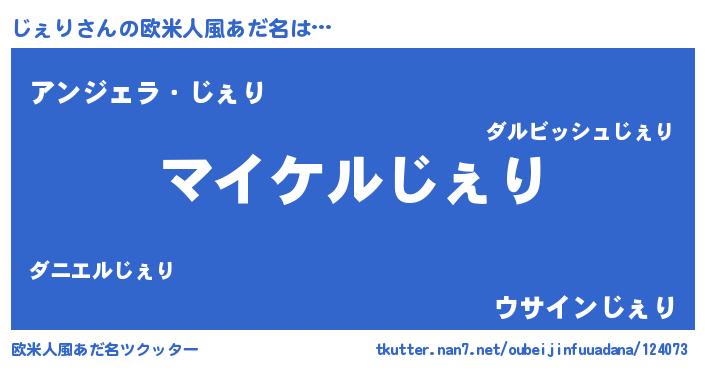 | 男性向けラノベタイトル風あだ名 | 『じぇりの憂鬱』 |