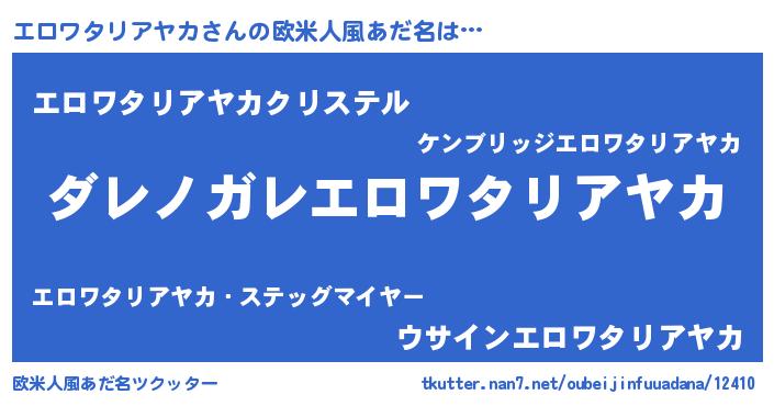 | 男性向けラノベタイトル風あだ名 | 『この素晴らしい世界にエロワタリアヤカを!』 |