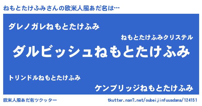 | 意味不明あだ名 | 『永久保存ねもとたけふみ』 |