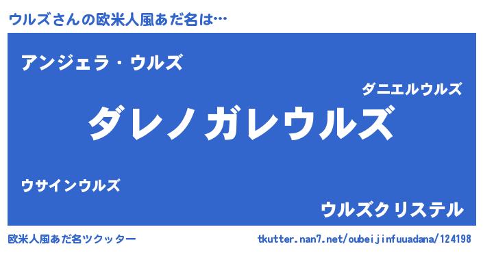 | ポケモン風あだ名 | 『ウールイ』『ウルゴンZ』『ヒウルズ』 |