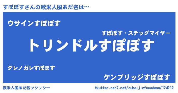 | 女子向けラノベタイトル風あだ名 | 『すぽぼすの玉の輿計画!』 |