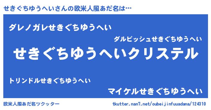 | 男性向けラノベタイトル風あだ名 | 『やはりせきぐちゆうへいの青春ラブコメはまちがっている 』 |