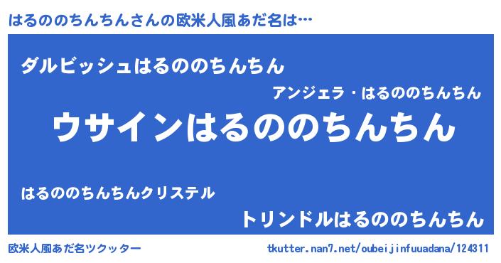 | 男性向けラノベタイトル風あだ名 | 『はるののちんちんの嫁は女の子じゃないと思った?』 |