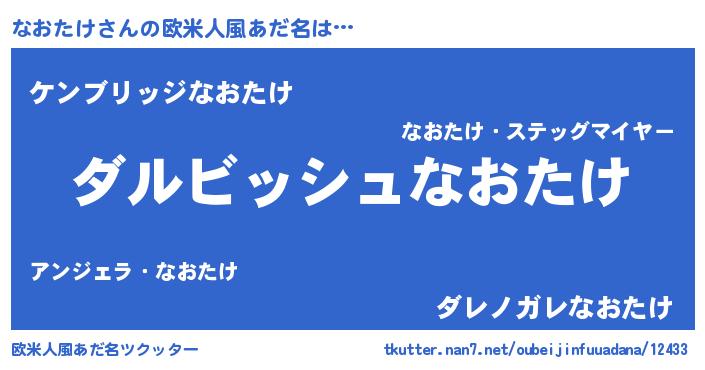 | 女子向けラノベタイトル風あだ名 | 『異世界で失敗しない100のなおたけ』 |