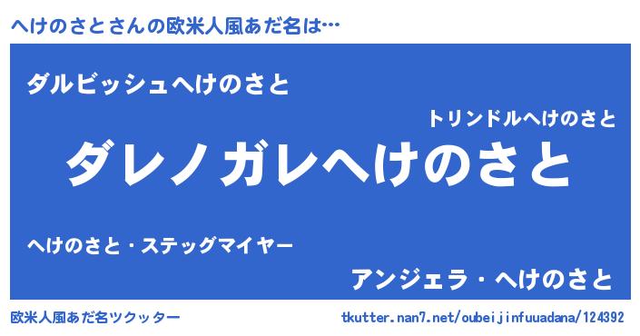 | 男性向けラノベタイトル風あだ名 | 『この素晴らしい世界にへけのさとを!』 |