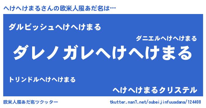 | ヒーロー風カッコイイあだ名 | 『仮面ヘケダー』『ネオヘケヘケマル』 |