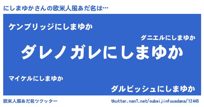 | 男性向けラノベタイトル風あだ名 | 『この素晴らしい世界ににしまゆかを!』 |