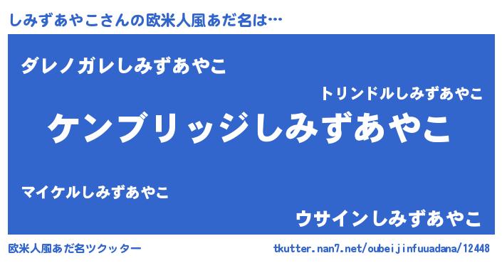 | 男性向けラノベタイトル風あだ名 | 『Re:しみずあやこから始める異世界生活』 |