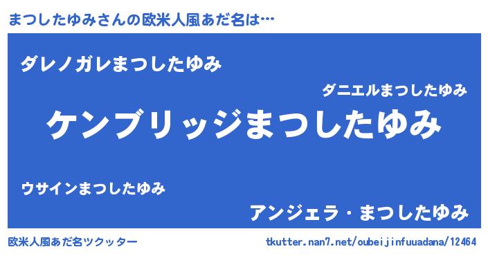 | 男性向けラノベタイトル風あだ名 | 『Re:まつしたゆみから始める異世界生活』 |