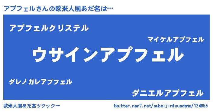 | 意味不明あだ名 | 『とにかく怪しいアプフェル』 |