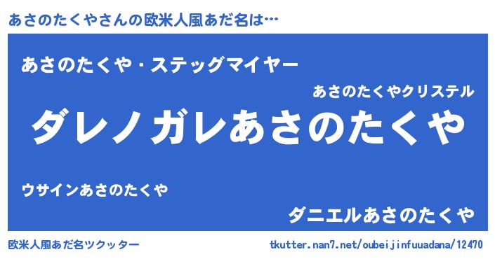 | 男性向けラノベタイトル風あだ名 | 『この素晴らしい世界にあさのたくやを!』 |